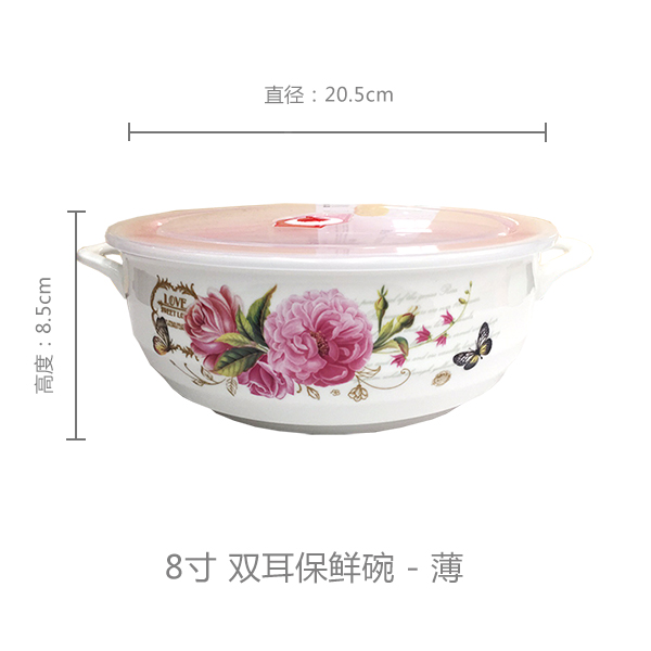 8寸 双耳保鲜碗 密封饭盒 可微波炉 带盖 薄款(花式可选)